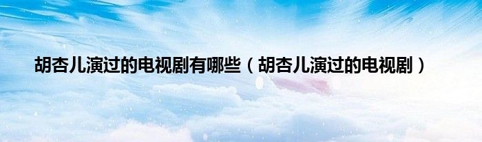 以上就是【胡杏儿演过的电视剧有哪些,胡杏儿演过的电视剧】相关内容。