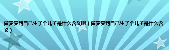 一、做梦梦到自己生了个儿子的梦境解析: 做梦梦到自己生了个儿子,预示着你会心想事成,财运也比较旺盛,是吉兆。