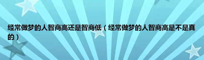 本文经常做梦的人智商高还是智商低,经常做梦的人智商高是不是真的到此分享完毕,希望对大家有所帮助。