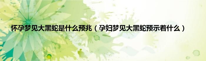 大家好,综合小编来为大家讲解下。怀孕梦见大黑蛇是什么预兆,孕妇梦见大黑蛇预示着什么这个很多人还不知道,现在让我们一起来看看吧!