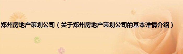 本文关于郑州房地产策划公司的基本详情介绍就讲解完毕,希望对大家有所帮助。
