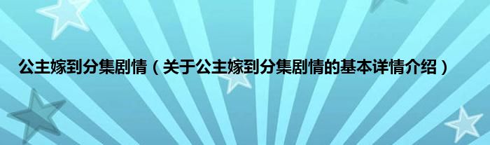 本文关于公主嫁到分集剧情的基本详情介绍就讲解完毕,希望对大家有所帮助。