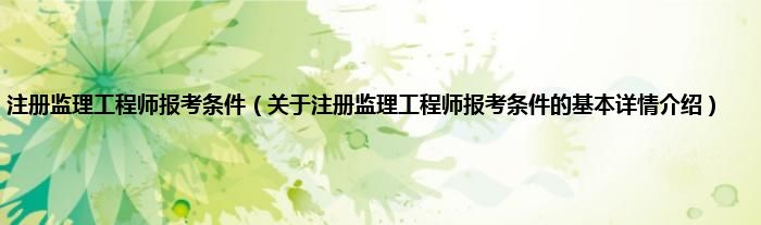 本文关于注册监理工程师报考条件的基本详情介绍就讲解完毕,希望对大家有所帮助。