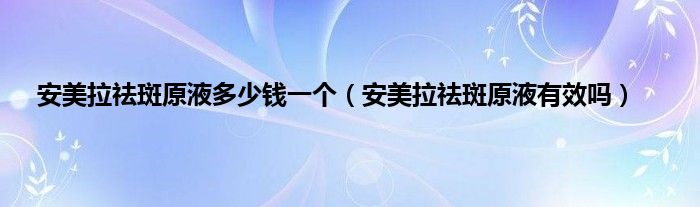 1、相信很多人都会觉得自己脸上不够光洁、白皙,甚至如果脸上有一些斑斑点点,还会觉得不好看,因此美白祛斑一直是很多女性朋友追求的,满足这类女性朋友的需求,市面上不少商家都生产了祛斑护肤品,安美拉祛斑原液就是其中之一,那么安美拉祛斑原液多少钱一个,安美拉祛斑原液有效吗?