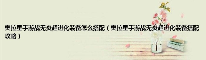 Olastar的手游无炎和超进化装备怎么搭配?奥勒兴手游战无炎超级进化装备搭配策略
