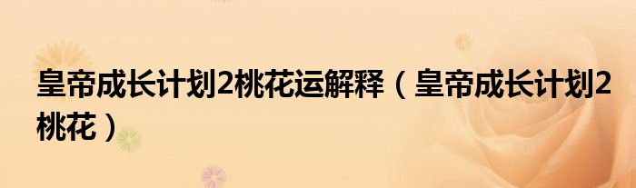 关于皇帝成长计划2桃花运解释,皇帝成长计划2桃花这个很多人还不知道,今天菲菲来为大家解答以上的问题,现在让我们一起来看看吧!