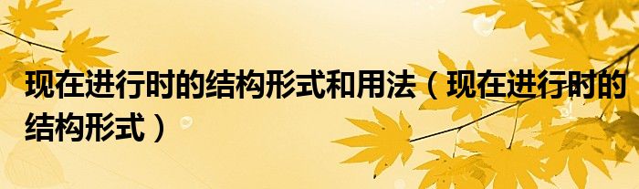 大家好,乐儿来为大家解答以下问题,现在进行时的结构形式和用法,现在进行时的结构形式很多人还不知道,现在让我们一起来看看吧!