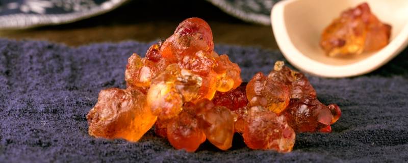 桃胶又名桃油、桃脂、桃花泪,是蔷薇科植物桃或山桃等树皮中分泌出来的树脂,主要成分是半乳糖、鼠李糖、α-葡萄糖醛酸、脂肪、蛋白质等。桃胶由桃树自然分泌或在外力作用下产生伤口,比较粘稠的液体通过太阳晒蒸发,产生固体,干的桃胶呈结晶石状很硬,有水溶性和适当的粘度。