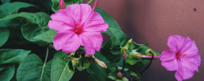 懒老婆花学名叫紫茉莉,也叫胭脂花、粉豆花、夜饭花、状元花、丁香叶、苦丁香、野丁香。紫茉莉和牵牛花有相似之外,因为这种花每天下午5点左右做晚饭的时候才开花,开花较晚,好像一位懒惰拖拉的老婆,故称之为懒老婆。