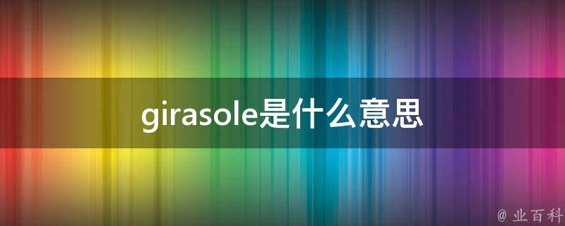 girasole的意思是青蛋白石、人名(吉拉索莱)、菊芋。例句:Effect of phosphate fertilizer on yield and nutrient uptake by girasole(Helianthus tuberosus)under irrigation with seawater in Laizhou sea beach(莱州湾海涂海水灌溉菊芋的磷肥效应的研究)。