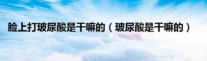 脸上打玻尿酸是干嘛的(玻尿酸是干嘛的)