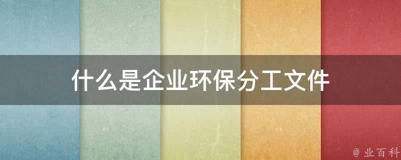 企业环保分工文件是指对企业内部各部门环保工作进行分工的文件。该文件通常详细阐述各部门的环保职责和所需承担的环保任务,以及违反环保规定时的处罚措施。企业环保分工文件通常由质量安全环保处下发,并由各车间主任负责有关环境保护业务的组织领导,技术员负责本单位的环境保护技术管理和三废治理工作。