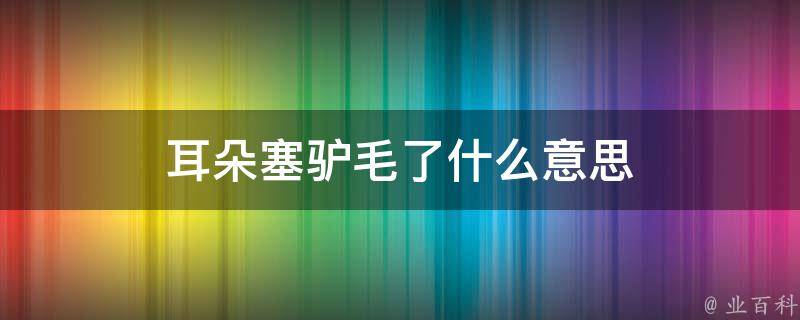 耳朵塞驴毛的意思是装聋,听不见,通常用来形容一个人故意装作听不见或者不理解别人的话。形容装作没听见一样的成语还有:置若罔闻、装聋作哑、充耳不闻、闭目塞听、蔽聪塞明。