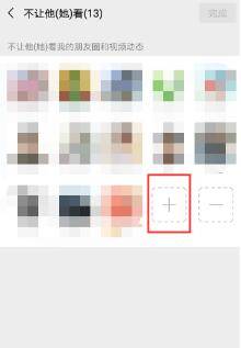 6、在不让他看界面,点击右上角“完成”。经过上述步骤操作后,列表中添加的所有人就不可以查看该帐号的朋友圈及视频动态。