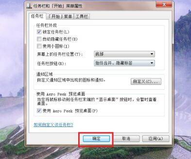 设置完毕之后,点击页面底部“确定”按钮,保存修改。最后,即可看到任务栏已经显示在桌面底部。