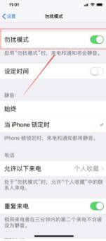 3、点击“勿扰模式”右侧的按钮即开启该功能。