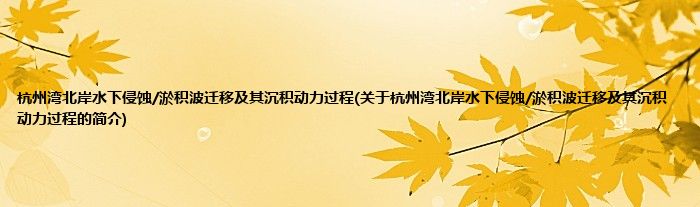 本文关于杭州湾北岸水下侵蚀/淤积波迁移及其沉积动力过程的简介就讲解完毕,希望对大家有所帮助。