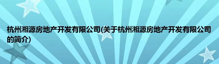 本文关于杭州湘源房地产开发有限公司的简介就讲解完毕,希望对大家有所帮助。