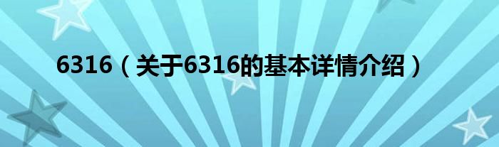 本文关于6316的基本详情介绍就讲解完毕,希望对大家有所帮助。