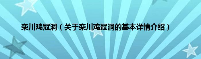 本文关于栾川鸡冠洞的基本详情介绍就讲解完毕,希望对大家有所帮助。