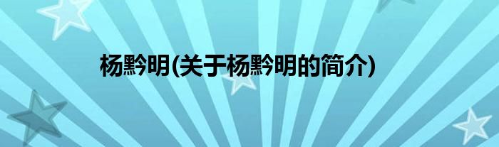 本文关于杨黔明的简介就讲解完毕,希望对大家有所帮助。