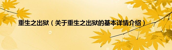 本文关于重生之出狱的基本详情介绍就讲解完毕,希望对大家有所帮助。