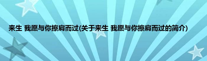 本文关于来生,我愿与你擦肩而过的简介就讲解完毕,希望对大家有所帮助。