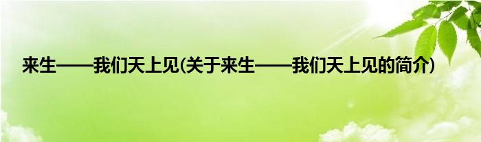 本文关于来生——我们天上见的简介就讲解完毕,希望对大家有所帮助。