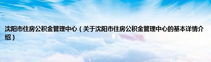 本文关于沈阳市住房公积金管理中心的基本详情介绍就讲解完毕,希望对大家有所帮助。