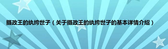 本文关于摄政王的纨绔世子的基本详情介绍就讲解完毕,希望对大家有所帮助。