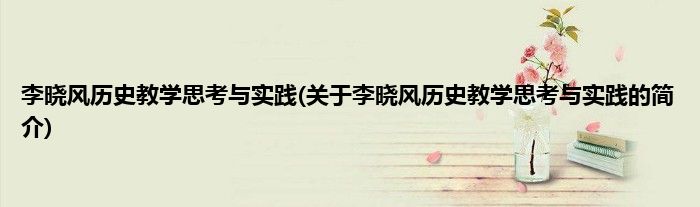 李晓风历史教学思考与实践(关于李晓风历史教学思考与实践的简介)