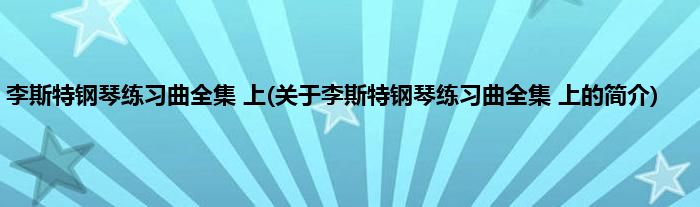 李斯特钢琴练习曲全集上(关于李斯特钢琴练习曲全集上的简介)