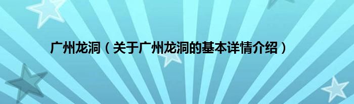 本文关于广州龙洞的基本详情介绍就讲解完毕,希望对大家有所帮助。