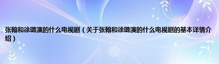 本文关于张翰和徐璐演的什么电视剧的基本详情介绍就讲解完毕,希望对大家有所帮助。