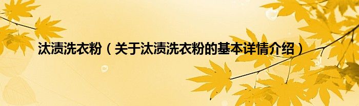 本文关于汰渍洗衣粉的基本详情介绍就讲解完毕,希望对大家有所帮助。