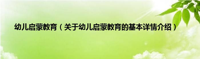 本文关于幼儿启蒙教育的基本详情介绍就讲解完毕,希望对大家有所帮助。