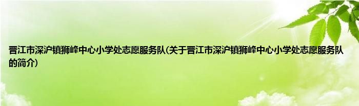 晋江市深沪镇狮峰中心小学处志愿服务队(关于晋江市深沪镇狮峰中心小学处志愿服务队的简介)