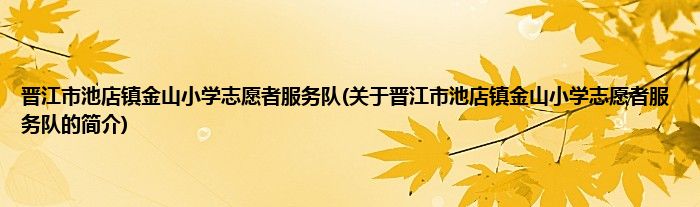 本文关于晋江市池店镇金山小学志愿者服务队的简介就讲解完毕,希望对大家有所帮助。