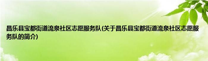 1、 昌乐县宝都街道流泉社区志愿服务队是由昌乐县社区志愿者领导下的志愿团体。