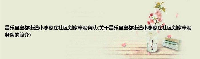 本文关于昌乐县宝都街道小李家庄社区刘家辛服务队的简介就讲解完毕,希望对大家有所帮助。