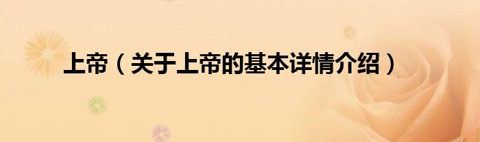 本文关于上帝的基本详情介绍就讲解完毕,希望对大家有所帮助。