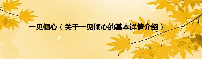 本文关于一见倾心的基本详情介绍就讲解完毕,希望对大家有所帮助。