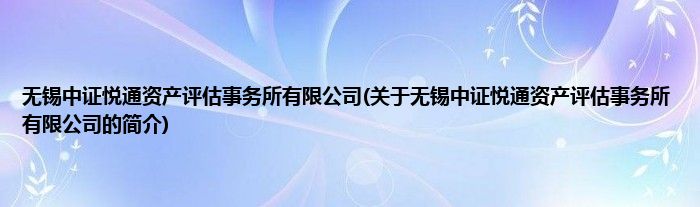 本文关于无锡中证悦通资产评估事务所有限公司的简介就讲解完毕,希望对大家有所帮助。