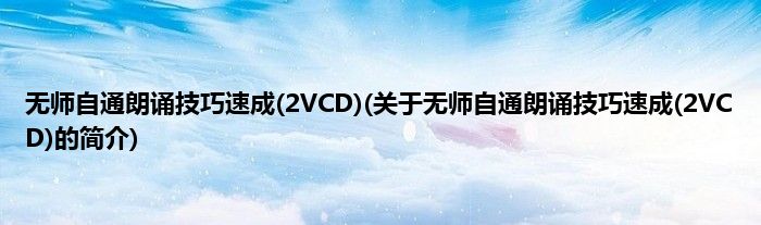 1、 《无师自通朗诵技巧速成(2VCD)》是北京电影学院音像出版社出版的VCD。