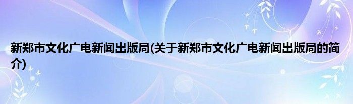 本文关于新郑市文化广电新闻出版局的简介就讲解完毕,希望对大家有所帮助。