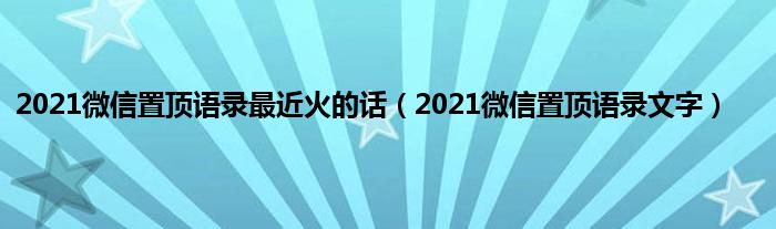 大家好,小常来为大家解答以上问题。2021微信置顶语录最近火的话,2021微信置顶语录文字很多人还不知道,现在让我们一起来看看吧!