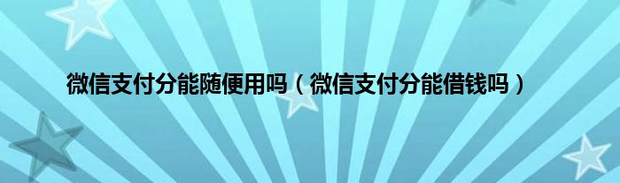 大家好,小常来为大家解答以上问题。微信支付分能随便用吗,微信支付分能借钱吗很多人还不知道,现在让我们一起来看看吧!