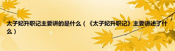 大家好,小常来为大家解答以上问题。太子妃升职记主要讲的是什么,《太子妃升职记》主要讲述了什么很多人还不知道,现在让我们一起来看看吧!
