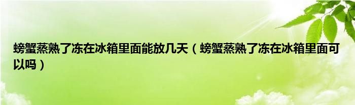 一、 螃蟹蒸熟了冻在冰箱里面可以吗