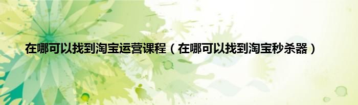 大家好,小常来为大家解答以上问题。在哪可以找到淘宝运营课程,在哪可以找到淘宝秒杀器很多人还不知道,现在让我们一起来看看吧!